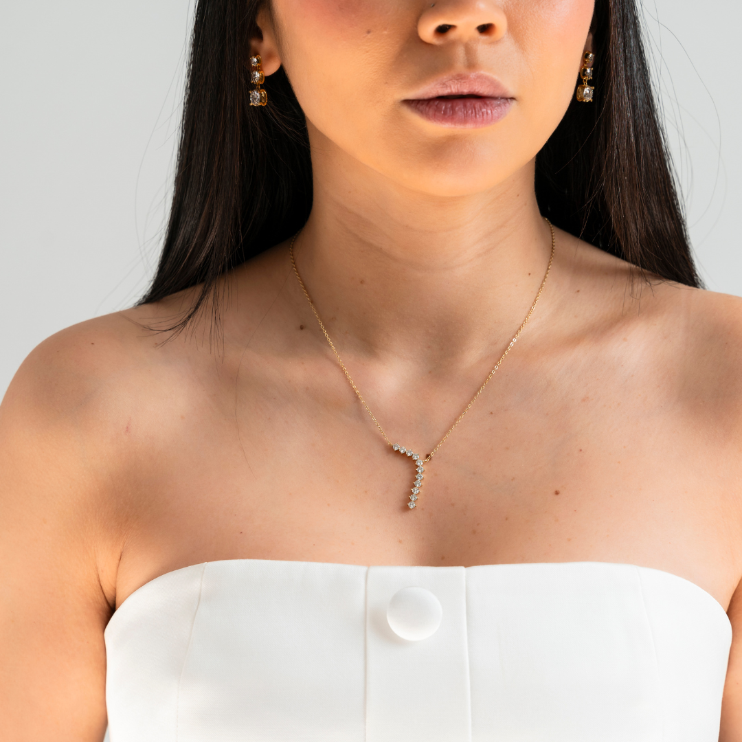 Curved Lariat Moissanite Pendant Necklace