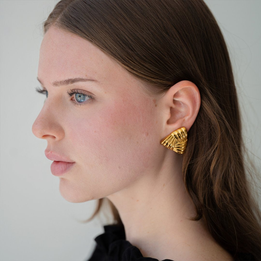 These waterproof earrings are made from 18k PVD gold plated stainless steel.
