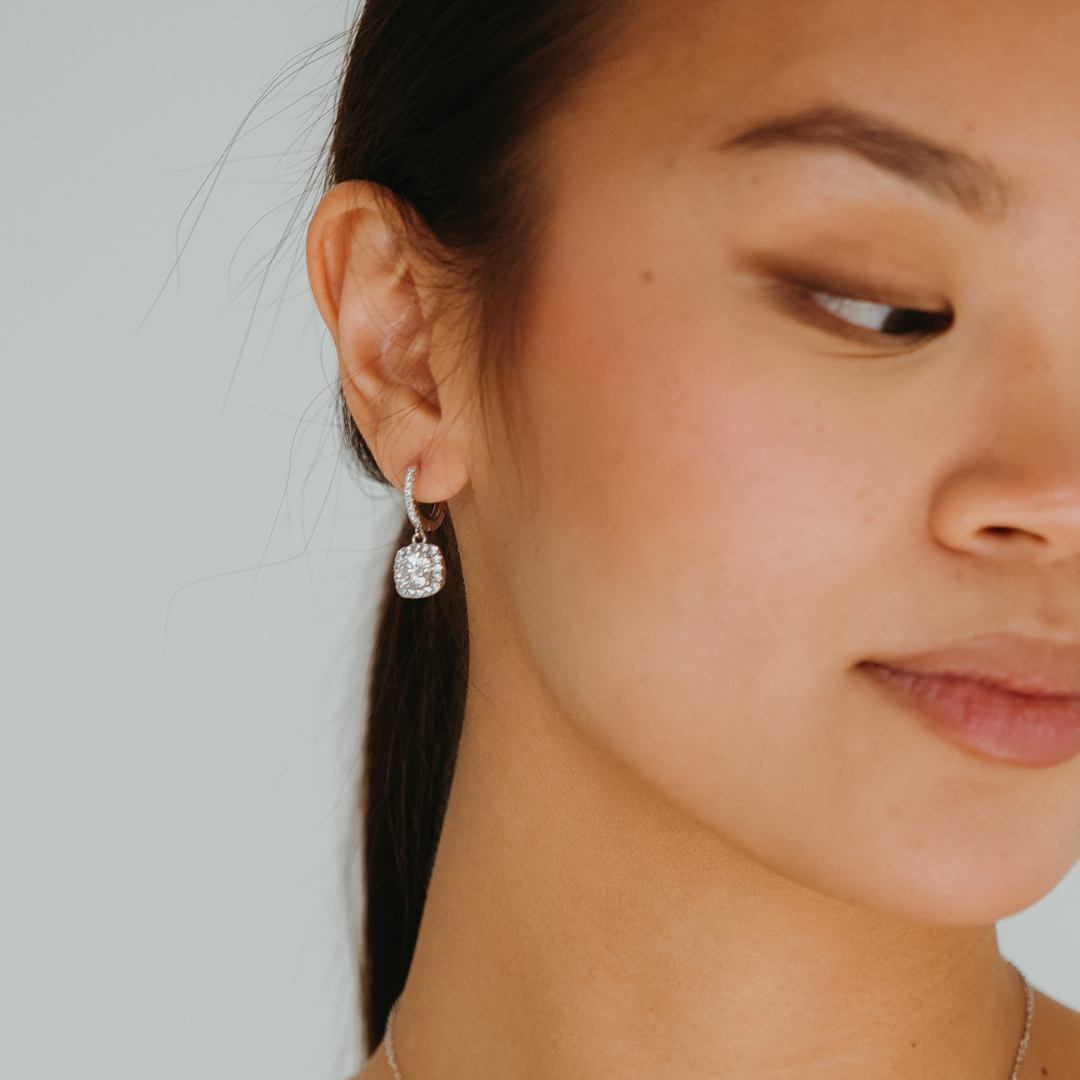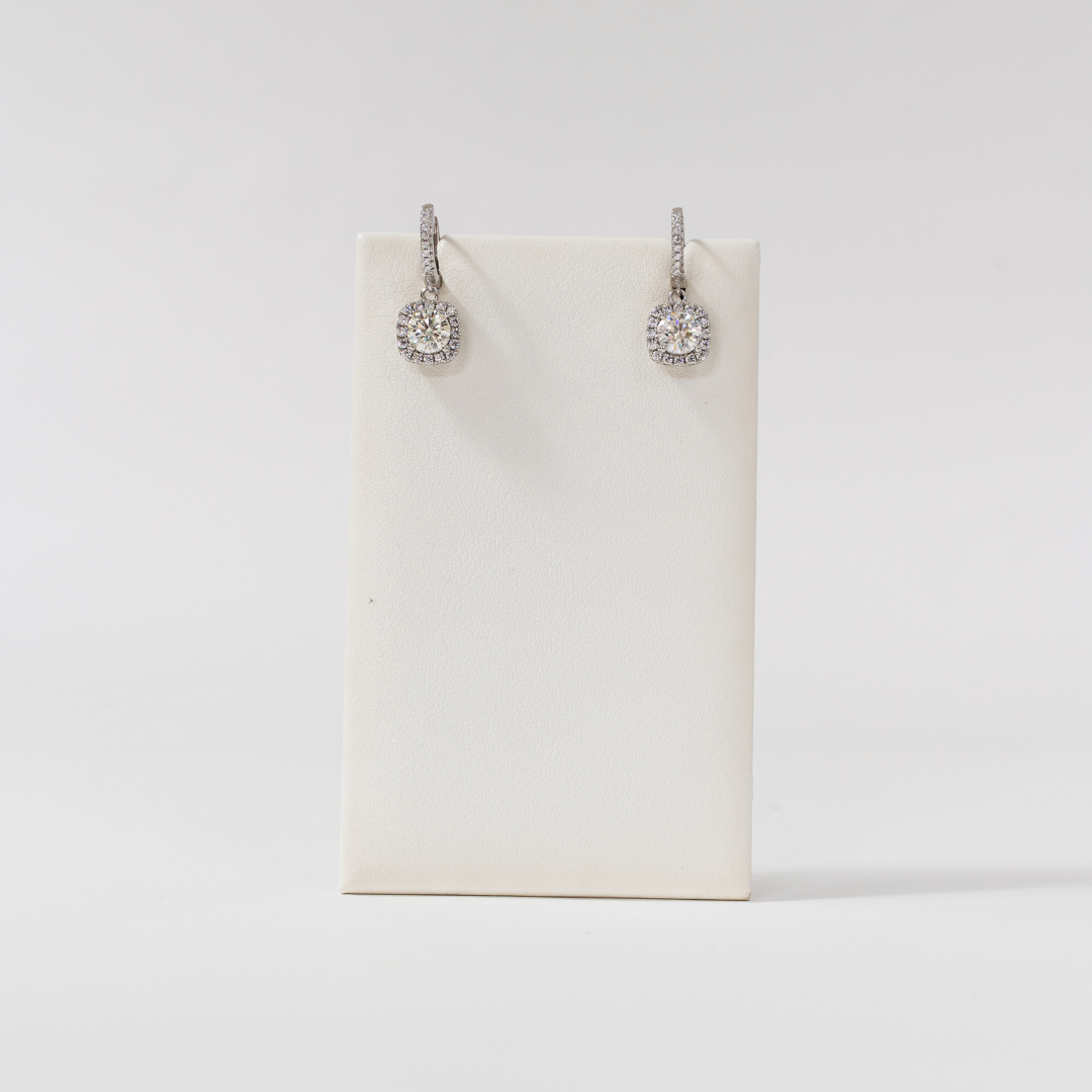 HALO Moissanite Hoop Dangling Earrings - Square