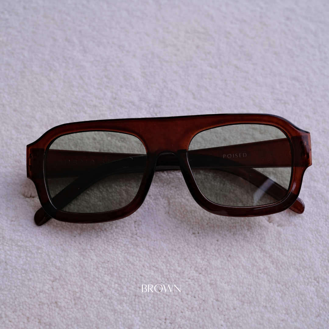 Bold aviator frames meet modern flair—choose from Brown, Black & Blue, Black & Brown, Tortoiseshell, or Khaki to match every mood. -