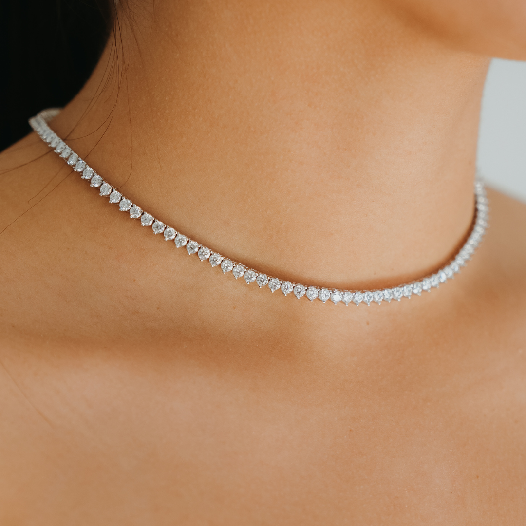ROUND BRILLIANT MOISSSANITE Tennis Necklace - 3 CLAW