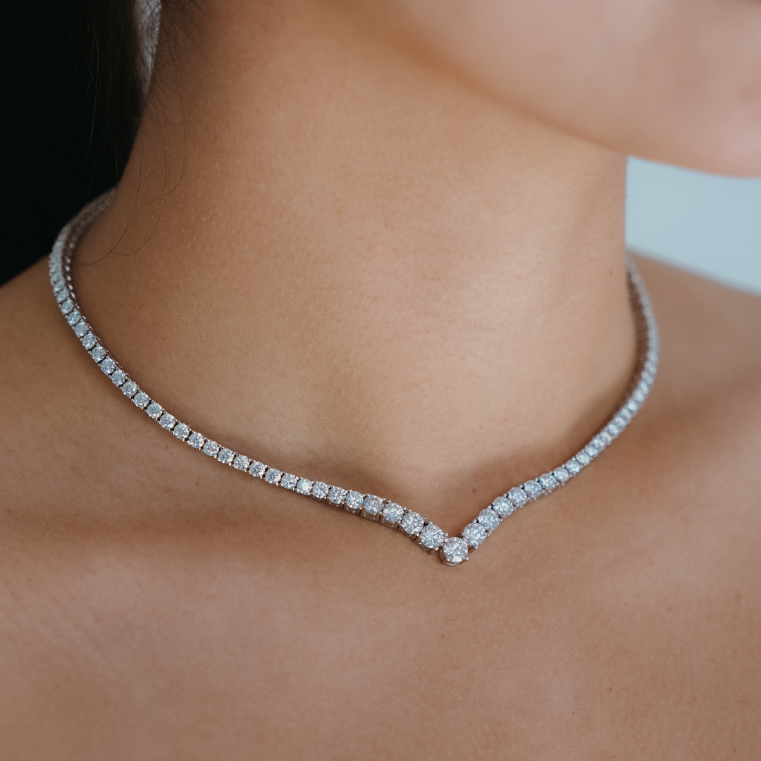 ROUND BRILLIANT MOISSANITE Tennis Necklace - V